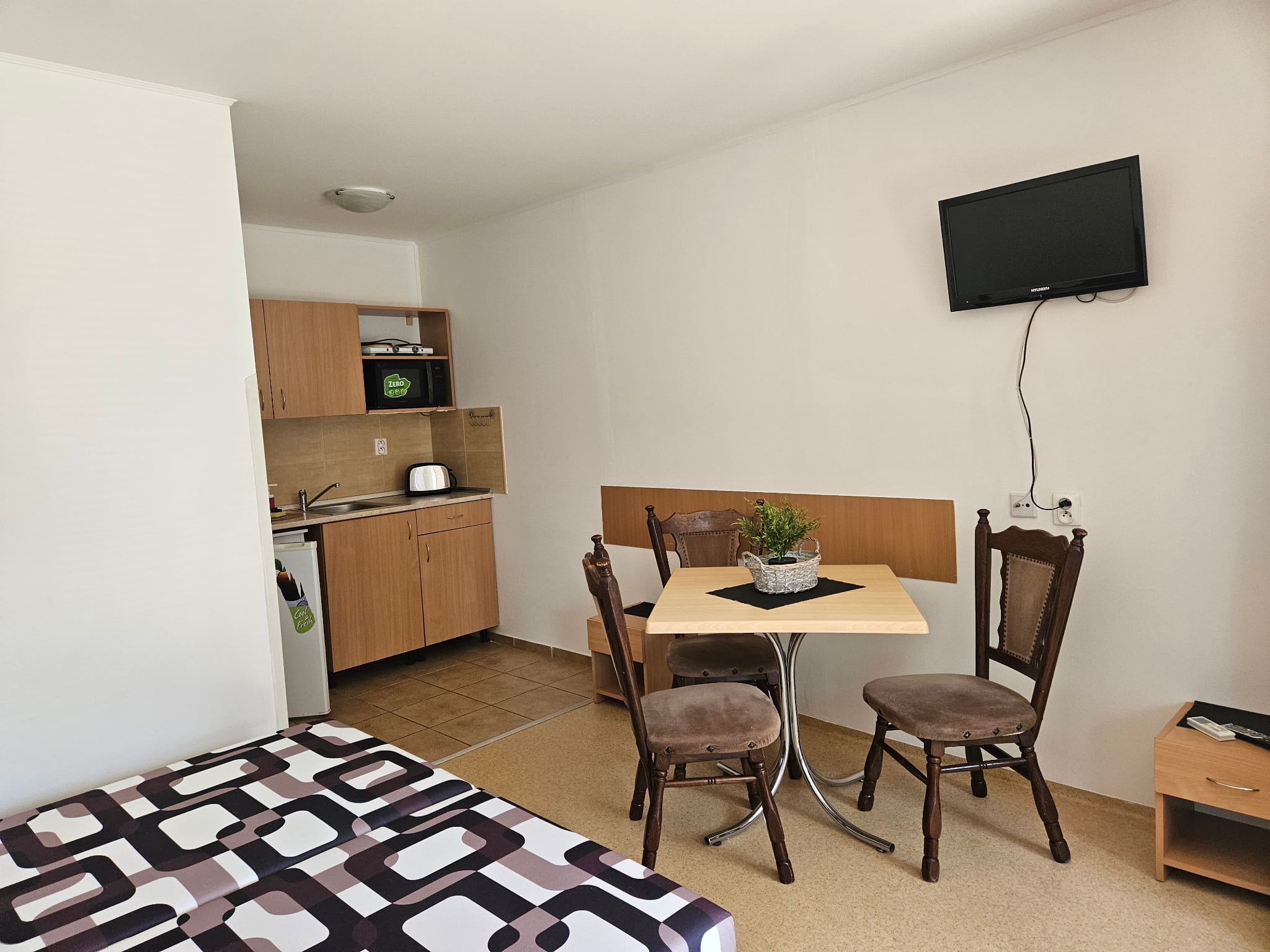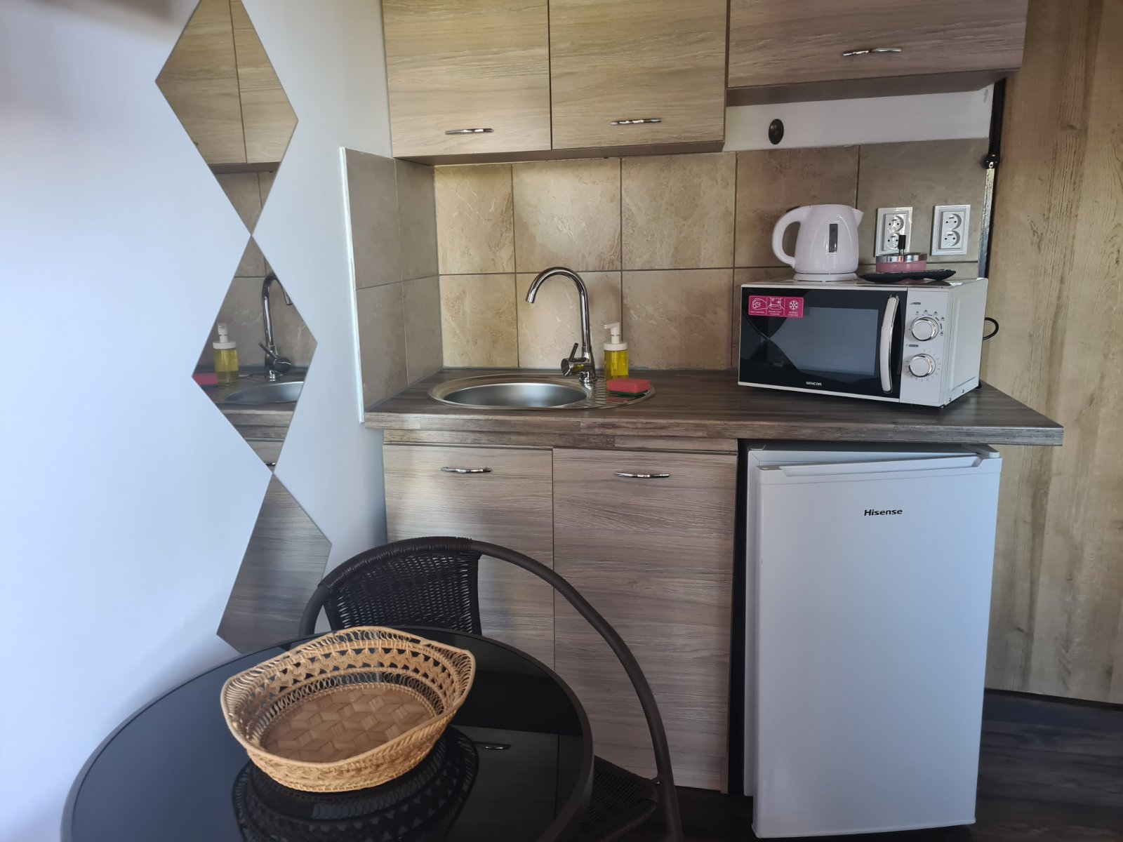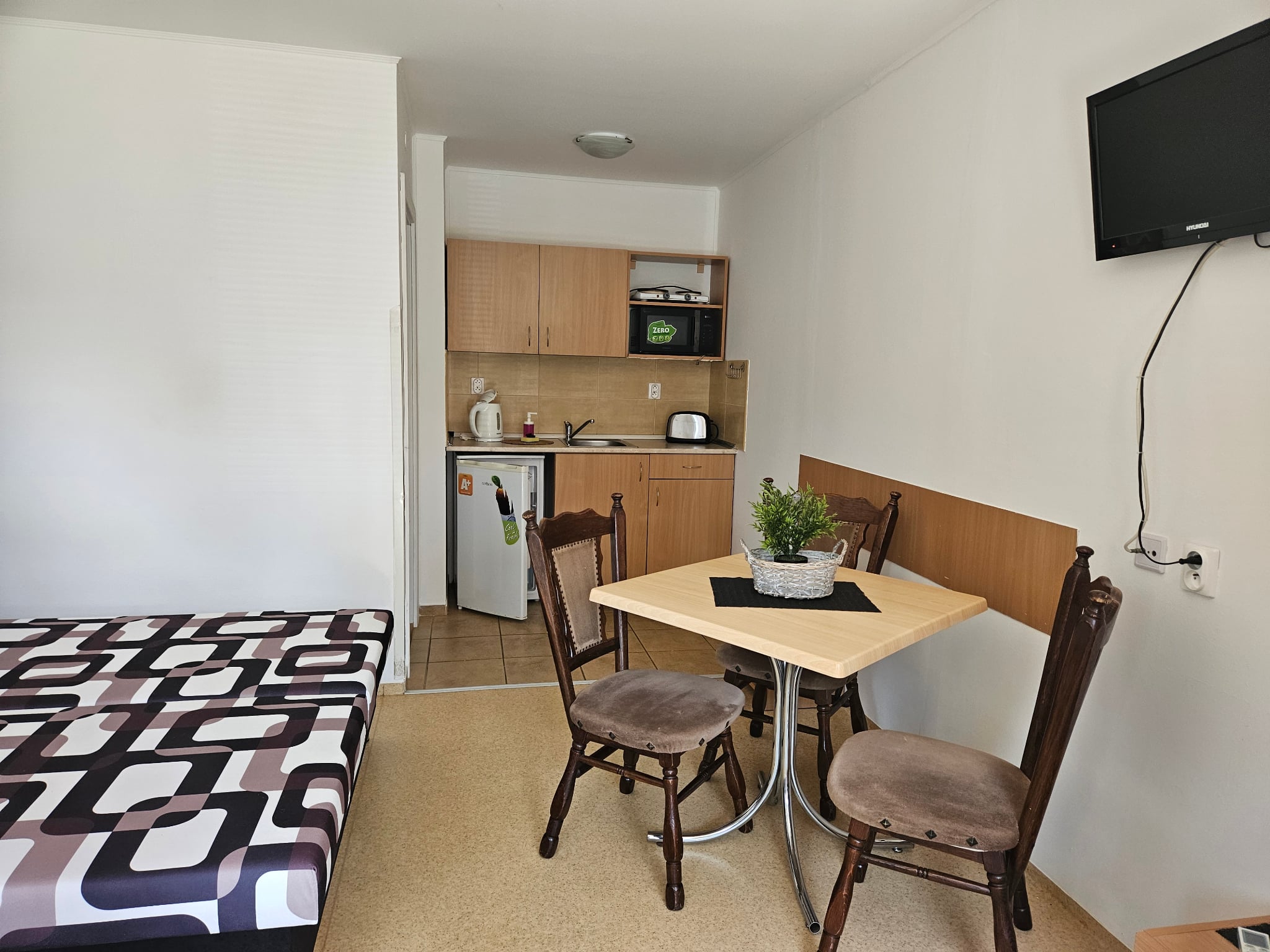Štúdiá Henrieta sú všetky rovnakého typu, v izbách je pre Vás pripravená manželská posteľ, samostatné lôžko a plnohodnotná prísteľka. Kuchyňa je pre Vaše potreby plne vybavená, využiť v nej môžete elektrický varič (dvojplatničku), mikrovlnnú rúru, rýchlovarnú kanvicu, chladničku a mrazničku. Vlastná kúpeľňa s toaletou a sprchovacím kútom je samozrejmosťou, tak ako aj bezplatné WiFi pripojenie na internet.
